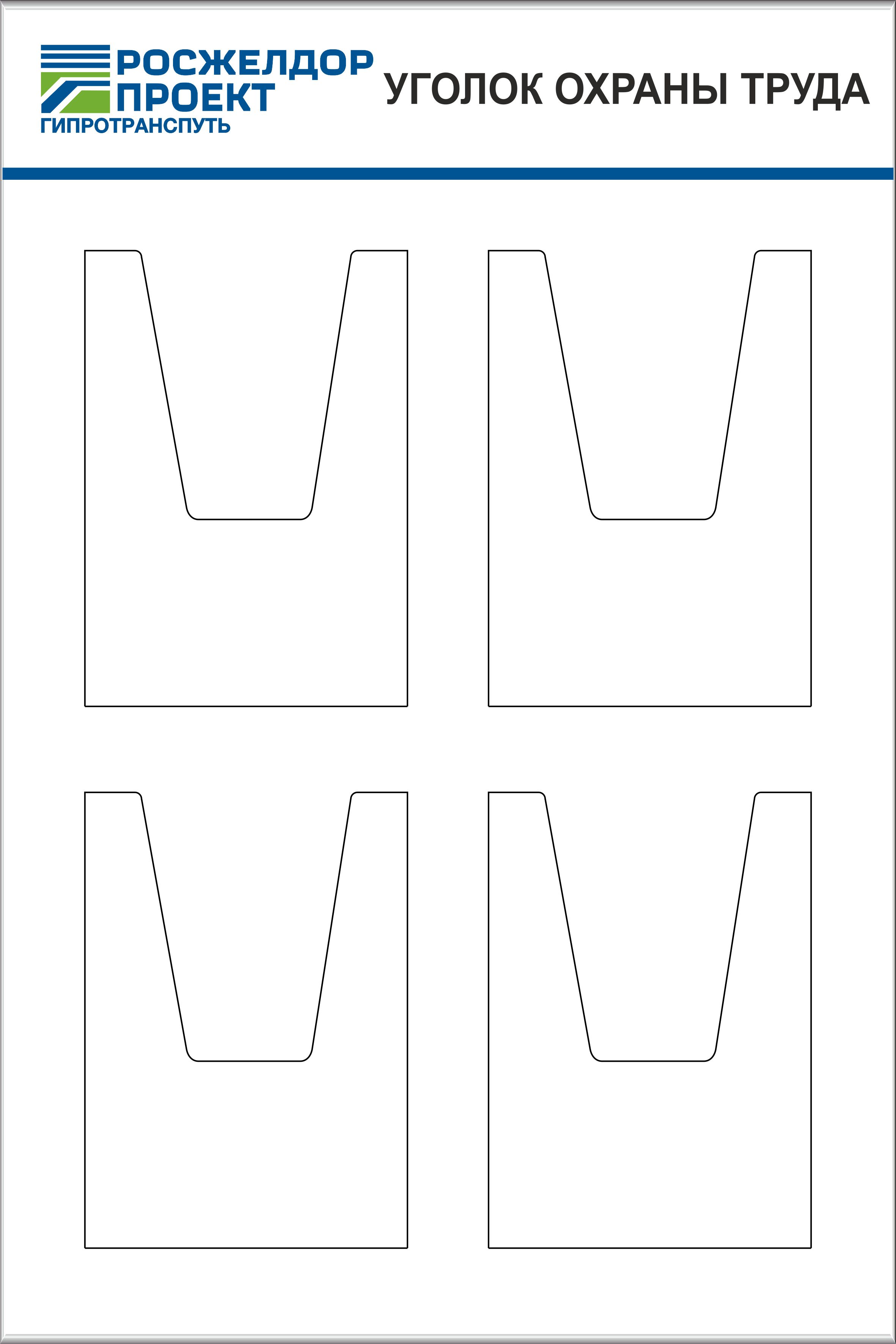 Стенд Уголок охраны труда для Гипротранспуть 900Х600 4 ОБЪЕМНЫХ КАРМАНА А4, Логотип (600х900; Пластик ПВХ 4 мм; Алюминиевый профиль)