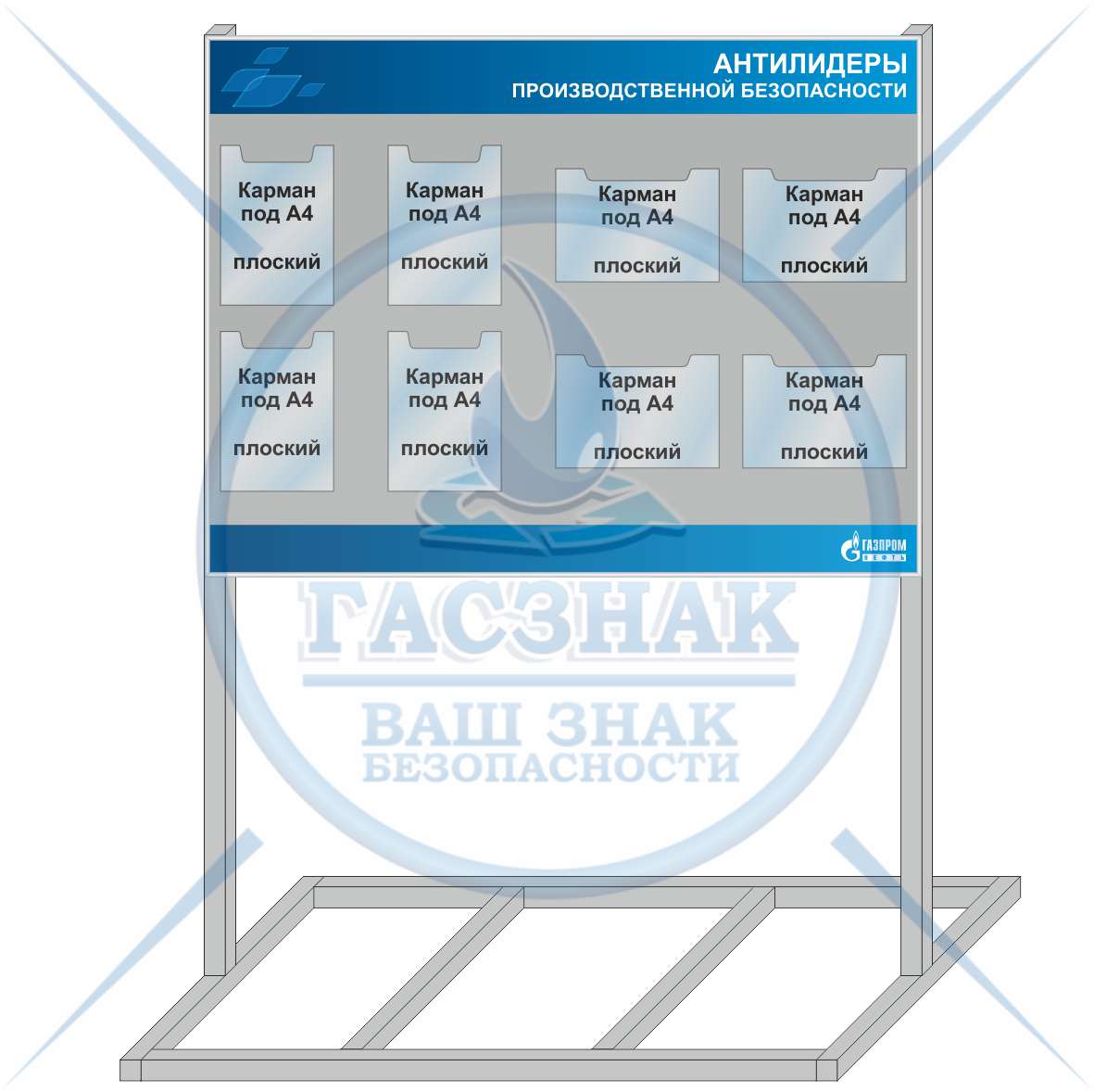 Стенд Антилидеры производственной безопасности. Уличный.  Материал металлокомпозит 3 мм , алюминиевый профиль, клик-система, нижняяплатформа, размер  1369х1034х700 мм.  Карман А4 вертикальный плоский-4,Карман А4 горизонтальный плоский-4 ООО "ГАСЗНАК"