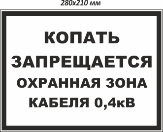 На нашем сайте можно купить Копать запрещается. Охранная зона кабеля 0,4кВ по доступной цене. Предусмотрена доставка заказов в Оренбурге.